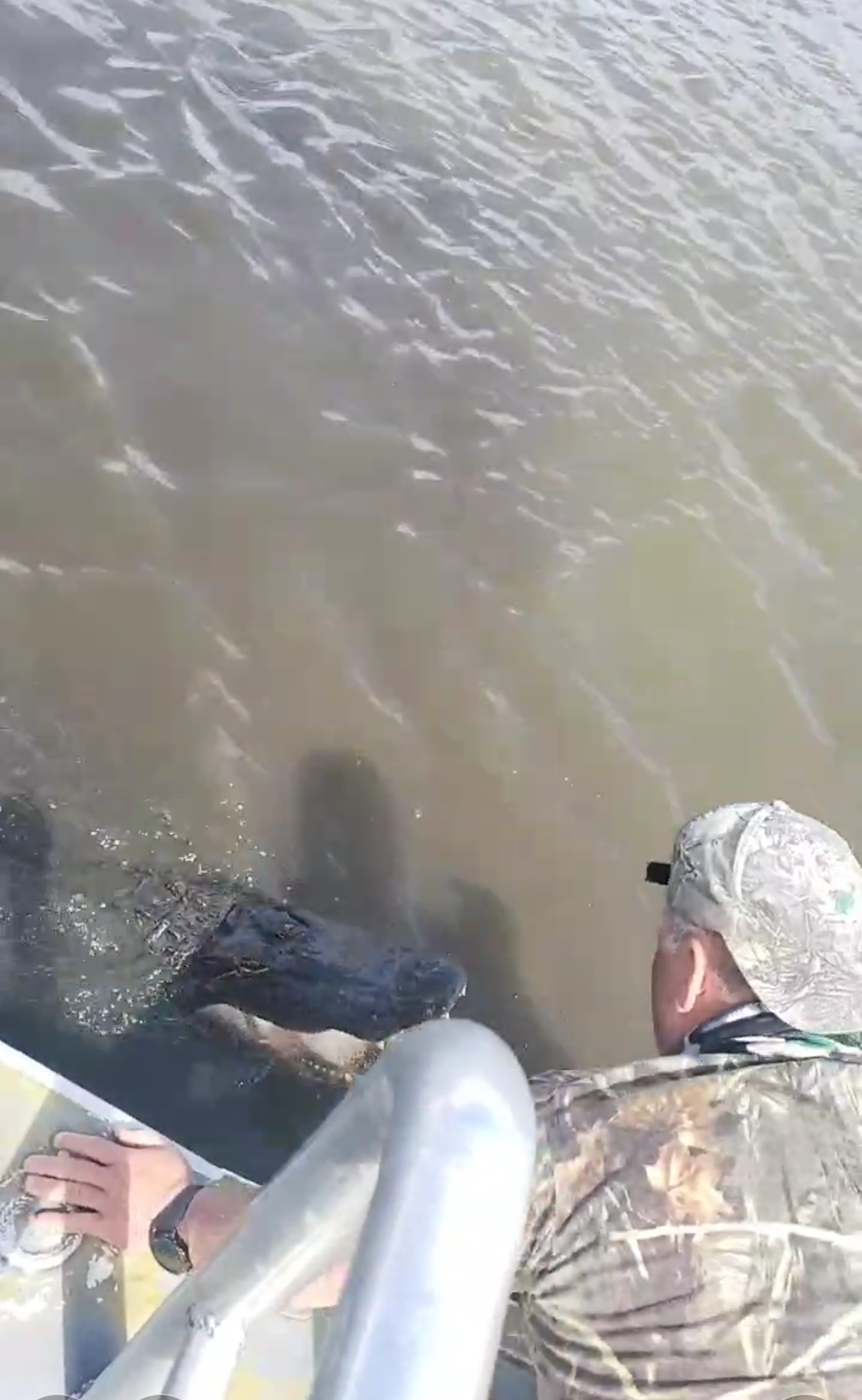 As we eased down the bayou, we spotted two gators lounging on the bank. Then Jay started calling them—yep, actually yelling in what sounded like French, Creole, maybe Spanish? I don’t know what language he spoke, but those gators understood. They slithered into the water and swam right to our boat like they’d RSVP’d.
