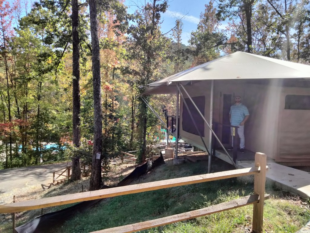 We rolled in at golden hour. Our home for the week? A tent — but not your basic scout setup. These things had beds, heat, and easy bathroom access.