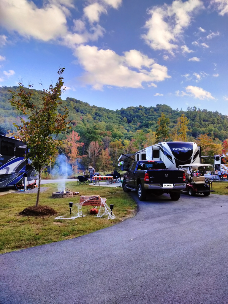 Quick backstory: My in-laws are living the RV dream and travel full-time. Every now and then, they call us up with a vacation invite we NEVER turn down. This time, they landed in a spot made for my husband Trey — Mr. Haunted House himself.
